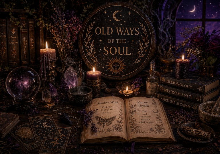 Welcome to Old Ways of the Soul a sacred haven where Mystics, Witches and Psychics unite in a harmonious dance of spirituality. Explore the realms of the arcane with psychic readings, embrace the ancient craft of witches, delve in the mysteries of Demonology and Necromancy, and embark on transformative shadow work for profound growth. In this enchanted space discover the unity of diverse practices, where every step is a sacred journey towards self discovery and empowerment. Join us, here is where magic meets purpose and the soul finds its cosmic home.